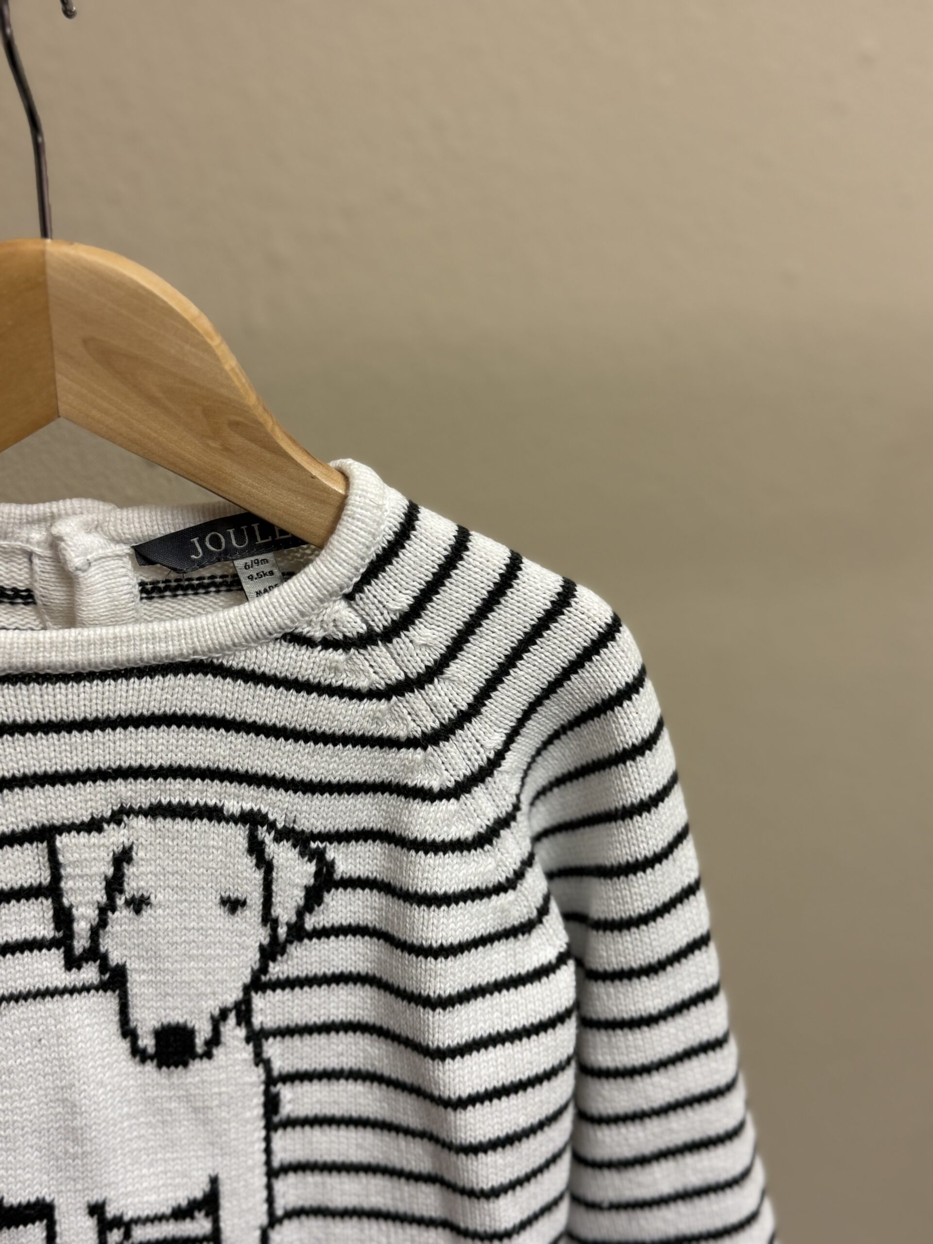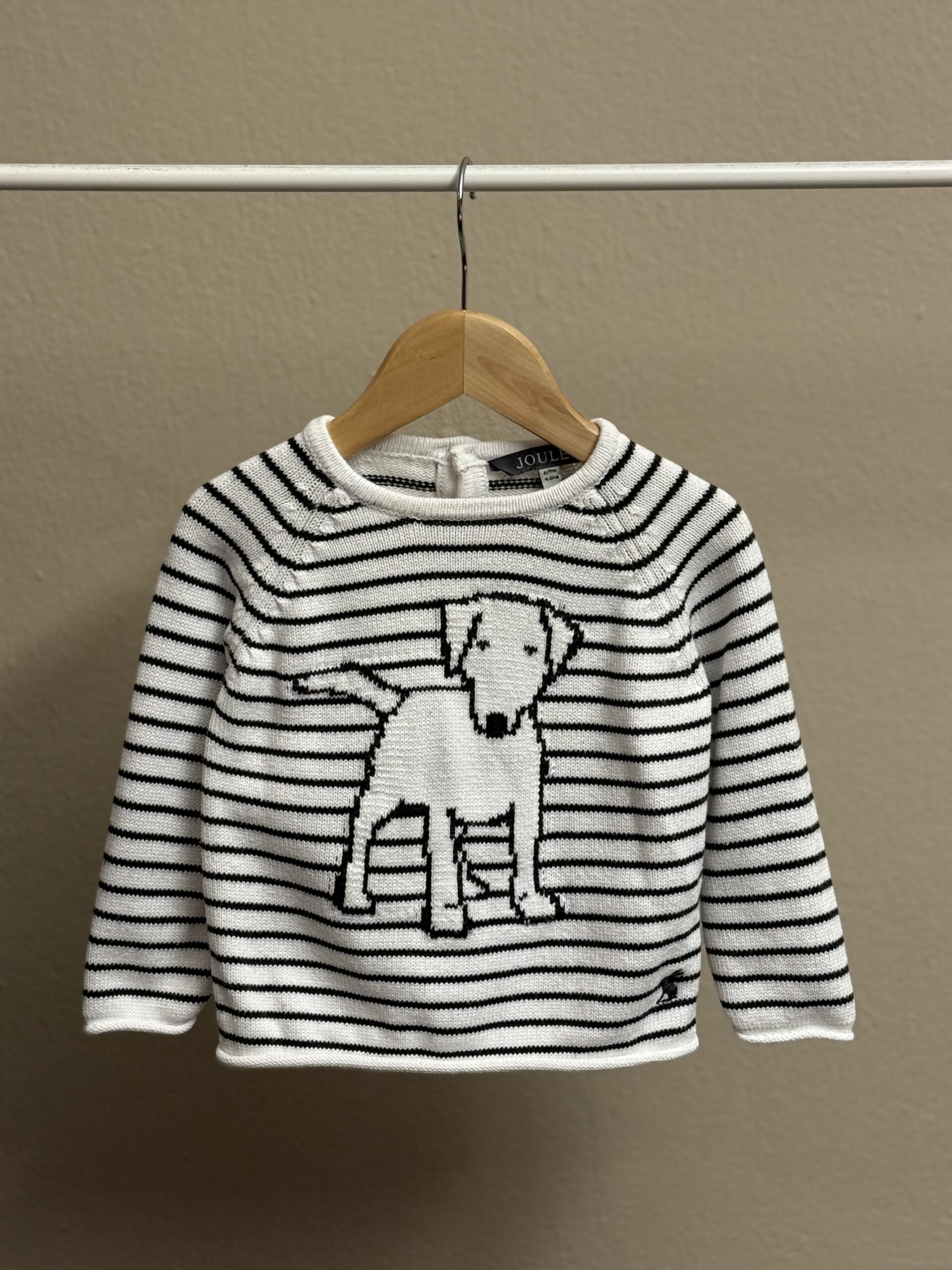 Kaunis raitaneule koiralla merkiltä Joules. Kokomerkintä 6-9kk. Vastaa kokoa 68-74cm.
