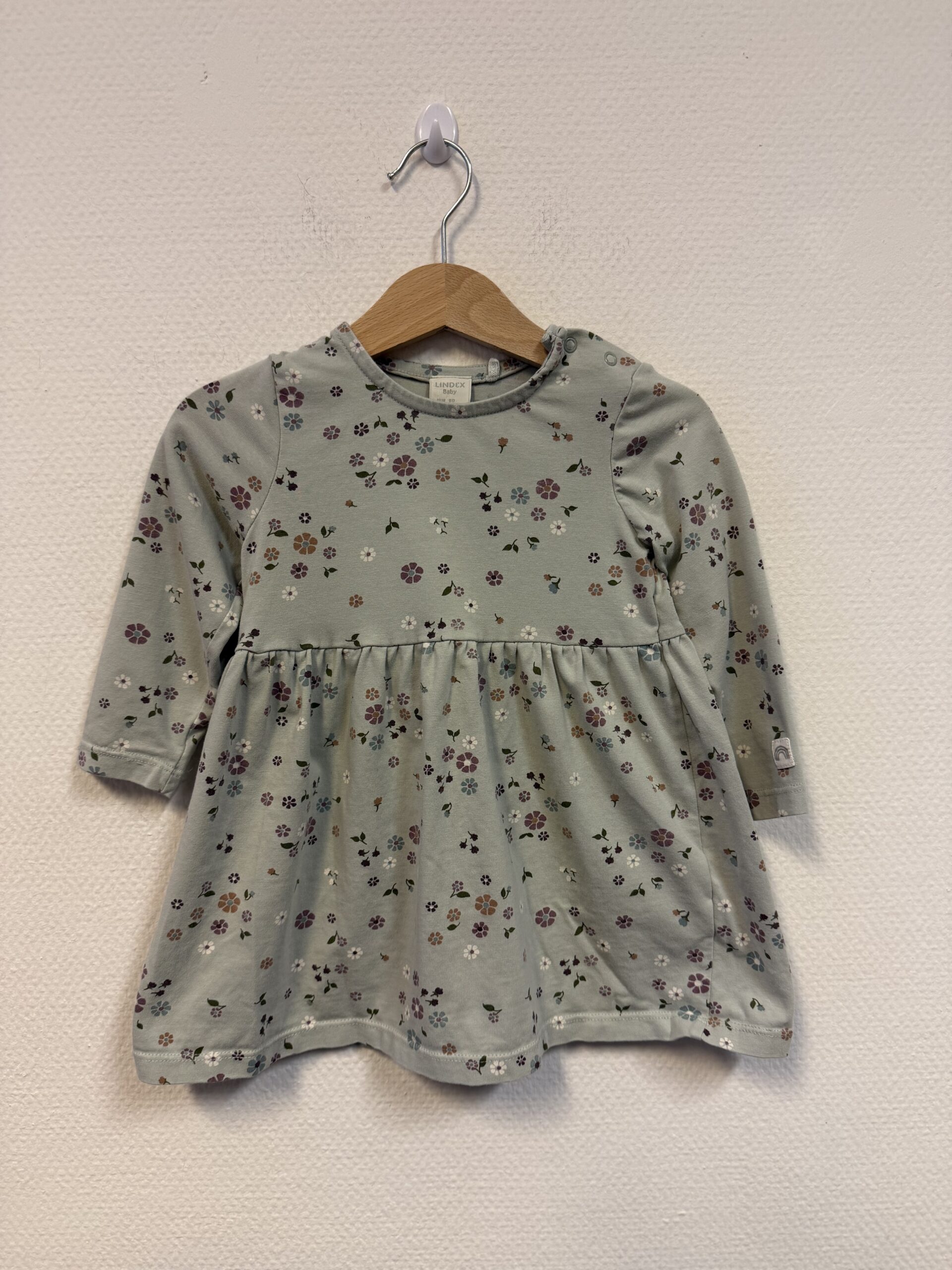 Pehmeä ja suloinen mekko merkiltä Lindex. Kokomerkintä 80cm.